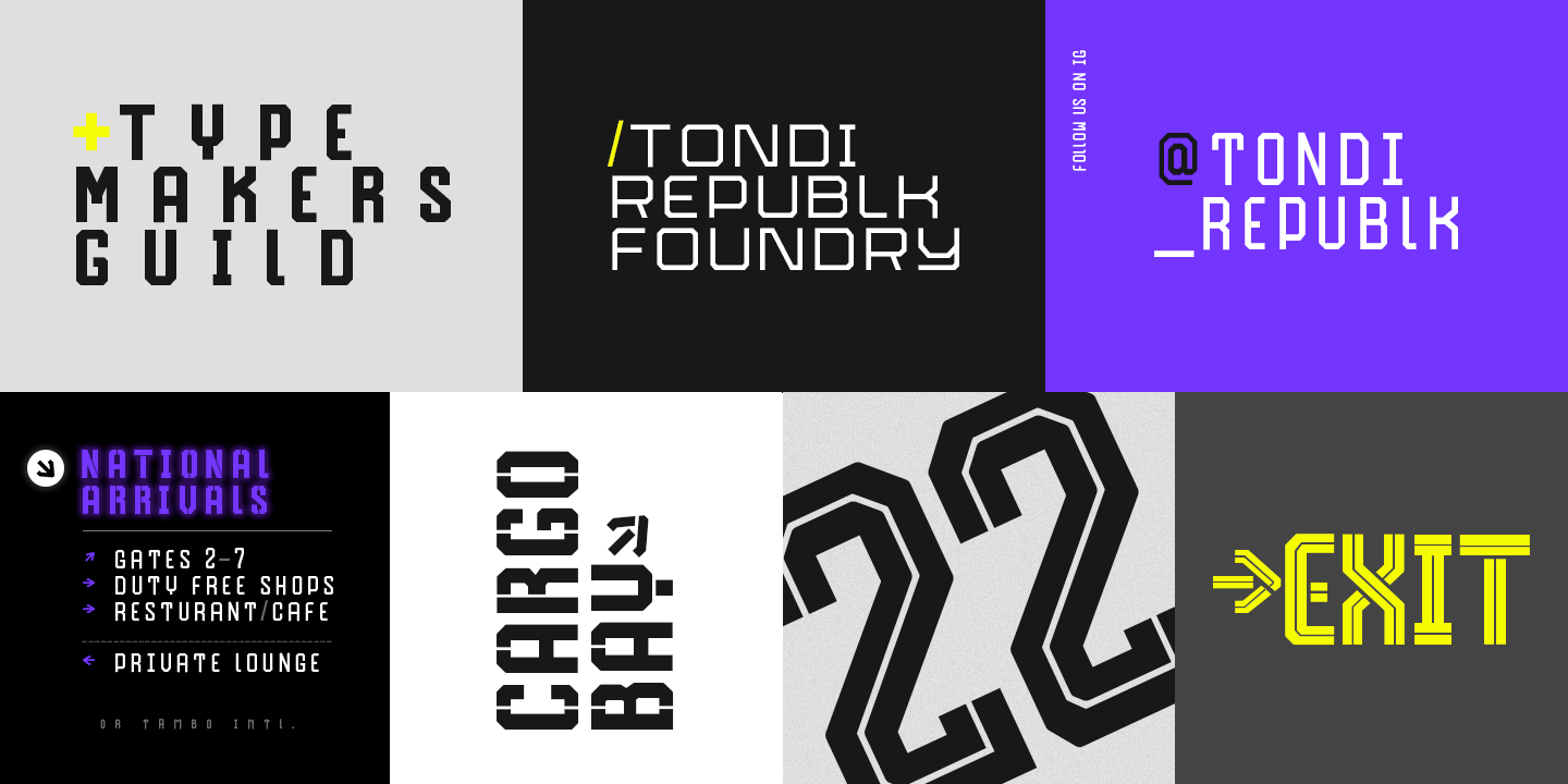 Reqnad Display is part of a series of typefaces by Tondi Republk, inspired by modern geometric industrial design and architecture. The Reqnad Display type system consists of seven typefaces with varying visual styles and weights which can be paired interchangeably to create harmonious, versatile and impactful visual communication systems.